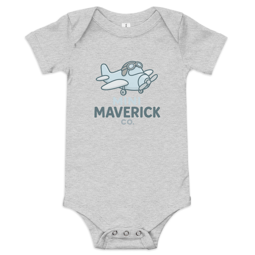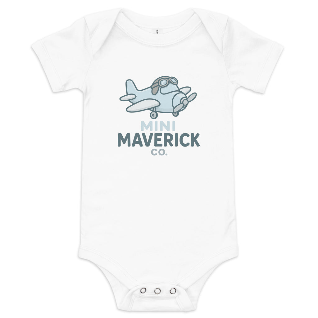 Designed for future flyers and tiny trailblazers, this comfy, ultra-soft cotton onesie features our signature Mini Maverick Co. pilot plane graphic — bold, playful, and packed with attitude. Whether it's tummy time or takeoff to daycare, your baby will be the coolest co-pilot in the crew.